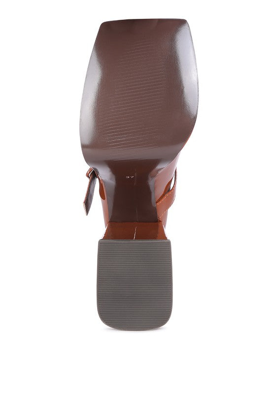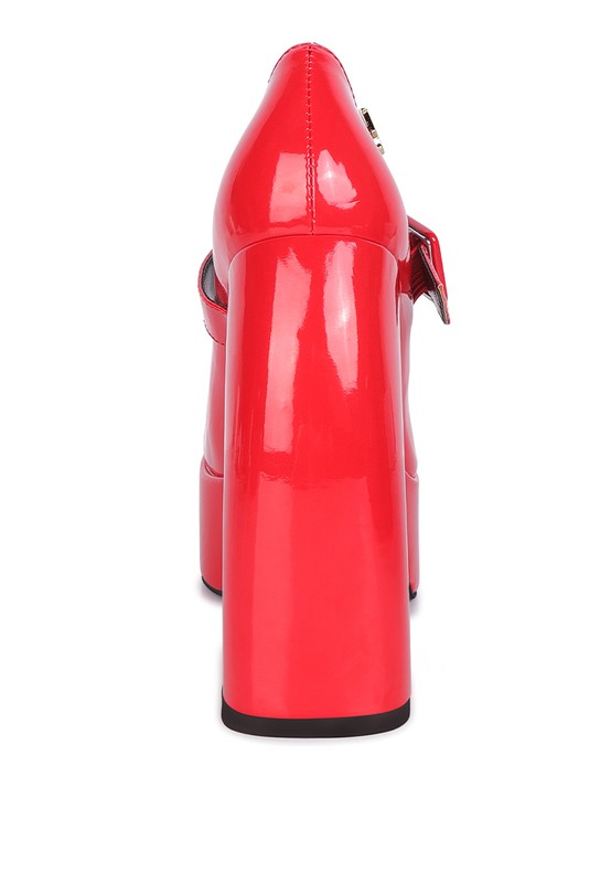 Badas bold and blingy handcrafted in Patent redeveloped PU leather this pair of ulta high block heel Mary Jane is not for the faint hearted. The sandals are well supported by the chunky high platform which adds to the height and cuts strain from feet.