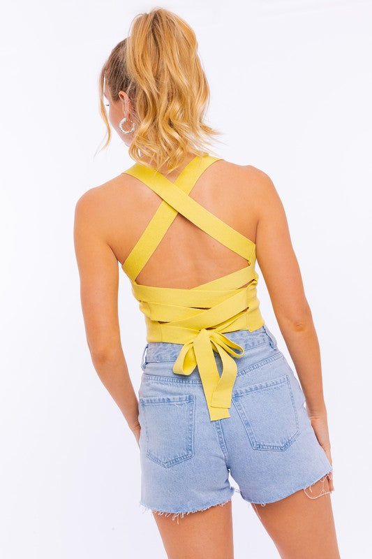 Introducing our Ribbed Knit Cami in a cropped silhouette, featuring a cut-out back with a tie detail and a square neck, a trendy and versatile addition to your wardrobe. This cami is designed with a ribbed knit texture that adds depth and style to your look. The square neck exudes sophistication, while the cut-out back and tie detail create an alluring and fashionable statement, revealing just the right amount of skin and allowing for a customized fit.